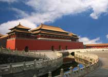 北京故宫(紫禁城),故宫导游图 又名紫禁城,位于北京市中心、天安门广场北1公里、景山南门对面,东西宽753米,南北长961米,面积达72万平方米,是世界上规模最大的宫殿建筑群。故宫外围是一条宽52米、深6米的护城河;河内是周长3公里、高近10米的城墙,城墙四面都有门,南有午门,北有神武门,东有东华门,西有西华门;城墙四角还耸立着4座角楼,造型别致,玲珑剔透。 >> 详细介绍
