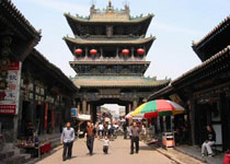 平遥古城以南大街为轴线,古城最高建筑市楼为轴心,形成“左祖右社”、“左文右武”、“文武